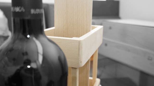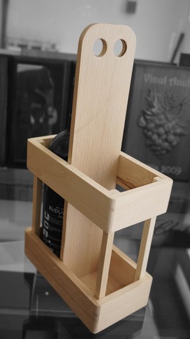 Suport pentru doua sticle Finisari: Lemn natur / Baituire / Lacuire. Optional-personalizare: Gravura laser.
