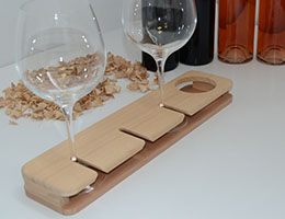 Suport pentru trei pahare si un vas. Finisari: Lemn natur / Baituire / Lacuire. Optional-personalizare: Gravura laser.